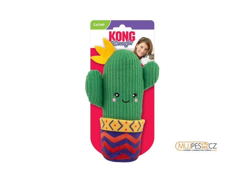 KONG Cat Wrangler zábavný a měkký kaktus v pestrobarevném šustivém květináči probudí ve vaší kočce přirozené lovecké instinkty, zažene nudu a přispěje k udržení dobré fyzické i psychické kondice. Kvůli většímu dobrodružství i jako prevence ztráty jednotlivých částí hračky je kaktus na pevno spojen s květináčem delším proužkem látky. Dlouhá a masivní konstrukce i možnost vysunout kaktus z květináče vybízí kočku k zápasu celým tělem i ke kopání zadními tlapkami. Pro větší vzrušení i radost ze hry vydává květináč šustivé zvuky a hračka je naplněna magickou šantou kočičí (catnipem), přírodní nenávykovou bylinou, která povzbuzuje ke hře až 70 % koček. Do květináče lze také ukrýt drobné pamlsky nebo hračky a motivovat tím vaše kočky k další hře.