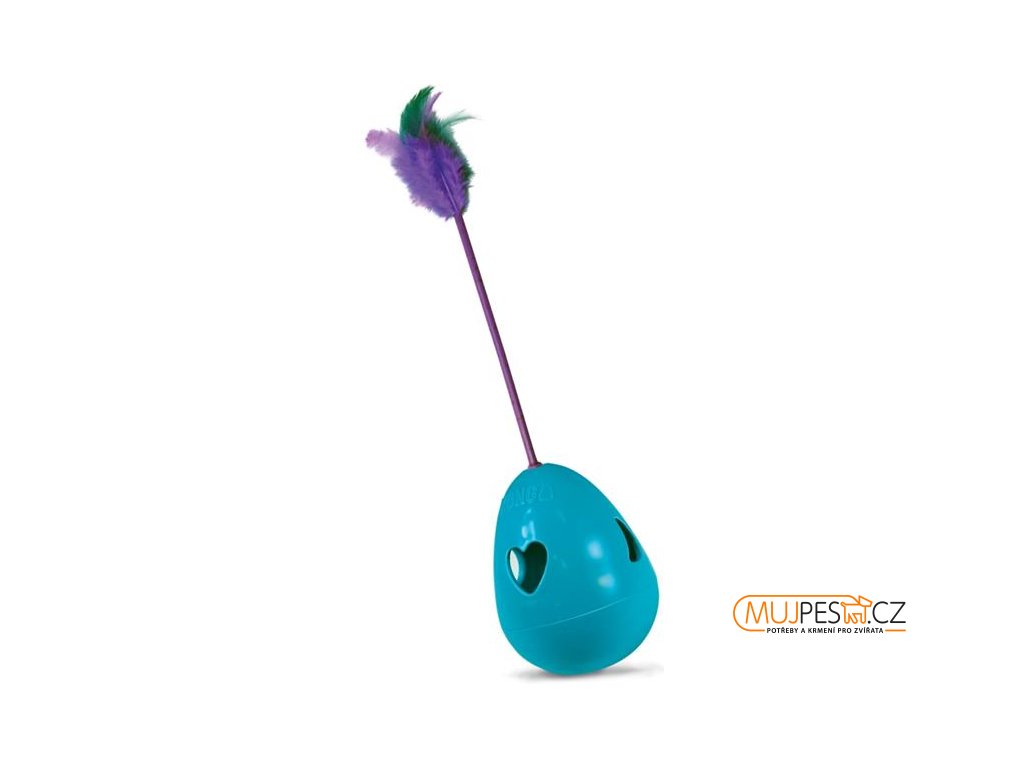 Pro větší vzrušení ze hry můžete na špičku vejce připevnit přiloženou vábničku s peřím. Spodní díl je navíc naplněný prémiovým americkým catnipem (šantou kočičí), jehož vůně je pro většinu koček nadmíru přitažlivá.