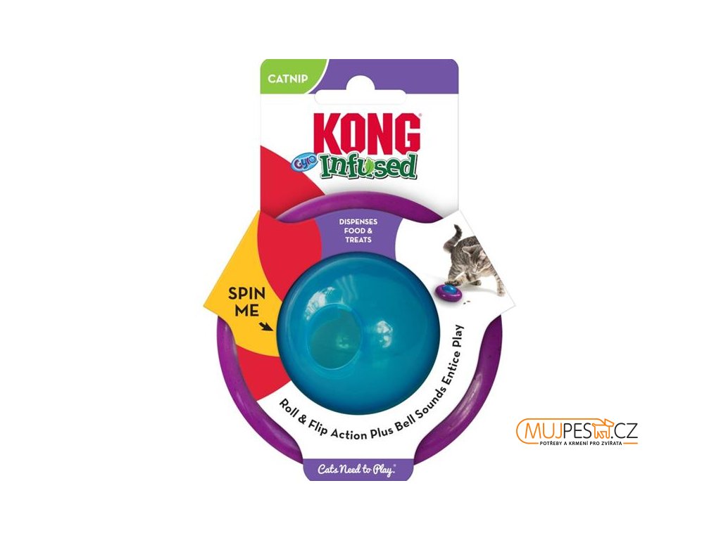 Naplňte interaktivní hračku KONG Cat Gyro granulemi či pamlsky a sledujte kočku, jak se z ní bude snažit dostat dobroty ven. Jak zvíře hračkou pohybuje, středová koule s otvory se otáčí a náplň z ní postupně vypadává. Středovou kouli lze vyjmout a rozšroubovat, takže se snadno plní i čistí. S objemem cca 80 ml pojme přibližně půl denní dávky krmiva – je tedy ideální náhradou za misku. Pro ještě větší vzrušení ze hry je hračka navíc napuštěná šantovým olejem KONG North American Premium Catnip a ve vnějším prstenci má zabudovanou rolničku.