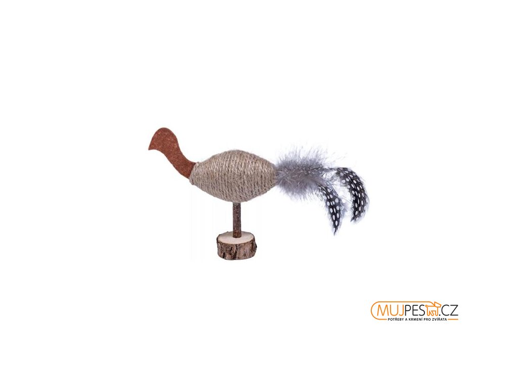 Hračka ve tvaru pštrosa je vyrobená ze dřeva matatabi (japonského kiwi), jehož vůně je pro mnoho koček přitažlivá. Tělo pštrosa je ovinuté konopným provázkem a ocas je z peříček. Použité přírodní materiály stimulují přirozené lovecké instinkty kočky. Hračka je vhodná pro samostatnou i společnou, interaktivní hru.