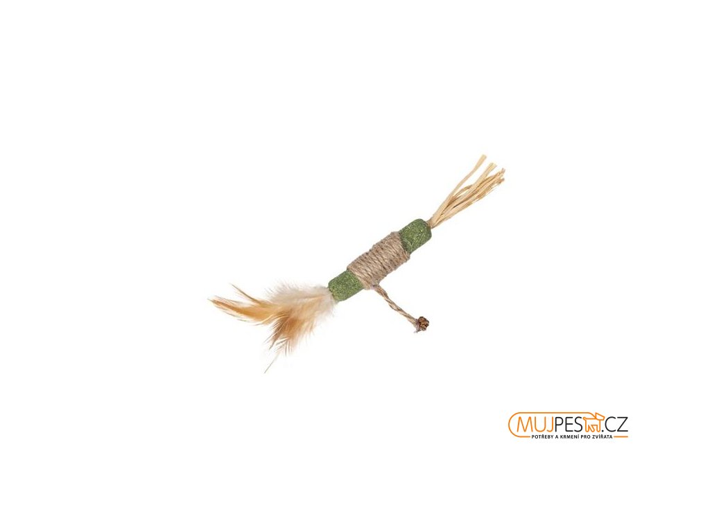 Hračka ve tvaru válečku je vyrobená z juty a lisovaného catnipu (šanty kočičí) a je doplněná peříčky a třásněmi. Použité materiály stimulují přirozené lovecké instinkty kočky. Jejich okusování navíc pomáhá odstraňovat zubní plak a podporuje tak zdraví ústní dutiny. Hračka je vhodná pro kočky všech věkových kategorií.