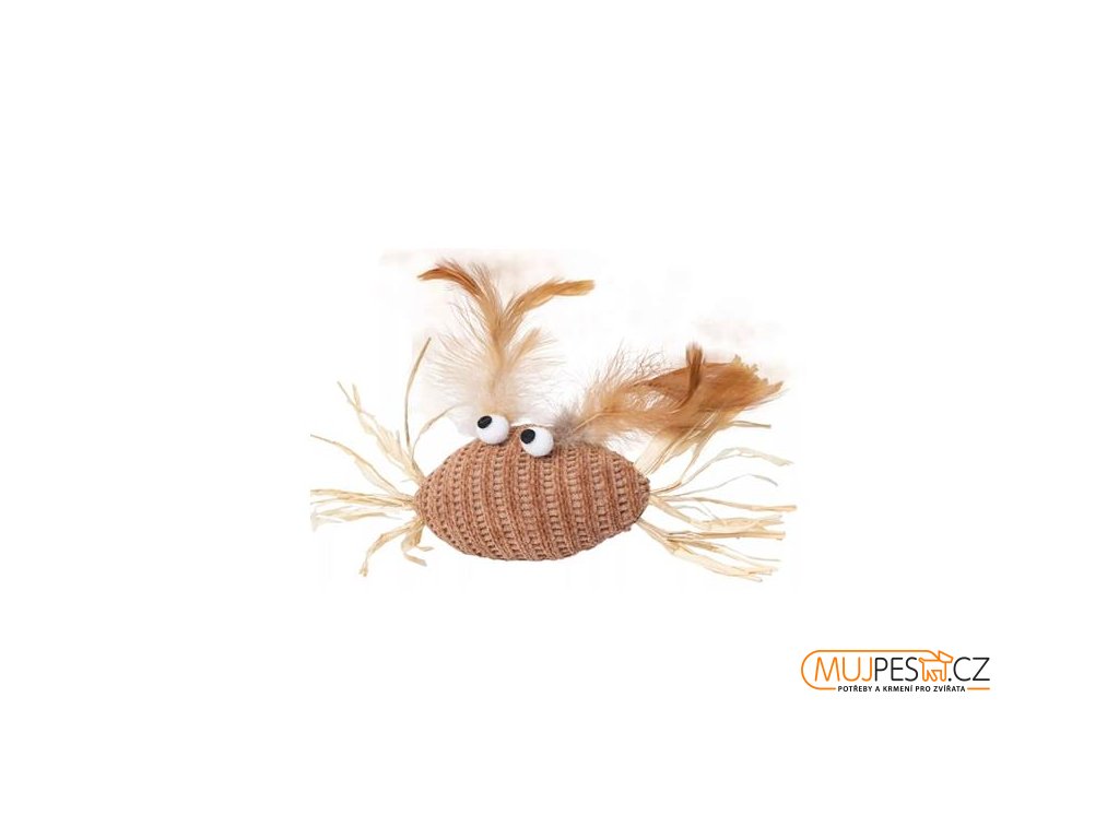 Hračka ve tvaru kraba je vyrobená z měkkého úpletu, který doplňují peříčka a sláma. Různorodé textury a přírodní materiály stimulují přirozené lovecké instinkty kočky a podněcují ji k aktivní hře. Hračka je vhodná pro kočky všech věkových kategorií.