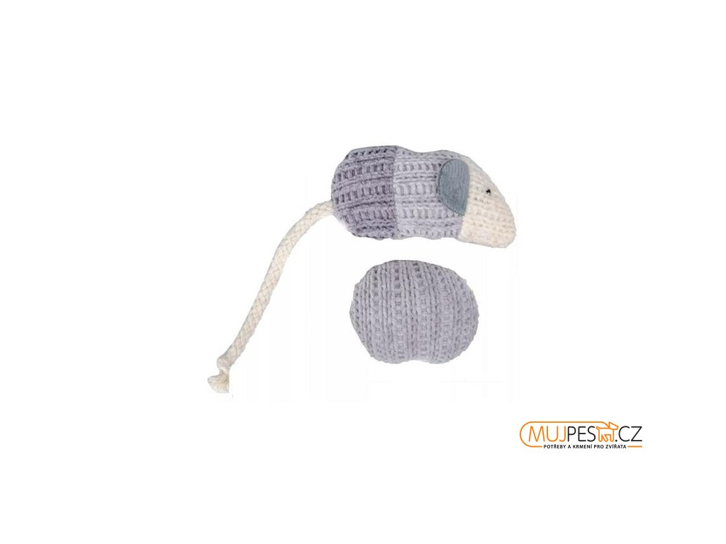 Dvě hračky – myška a míček – jsou vyrobeny z měkkého úpletu. Použité materiály stimulují lovecké instinkty kočky. Myška s dlouhým ocasem z provázku je vhodná i pro společnou, interaktivní hru.