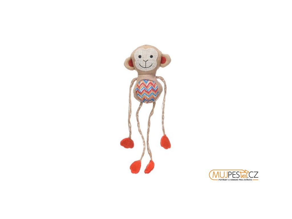 Textilní hračka ve tvaru opice kombinuje dva druhy látek – plátno a tkaninu s výrazným chevronovým vzorem. Uvnitř hračky je catnip (šanta kočičí), jehož vůně povzbuzuje ke hře až 70 % koček. Lovecký instinkt podněcují také dlouhé ruce a nohy z provázků zakončených plyšem.
