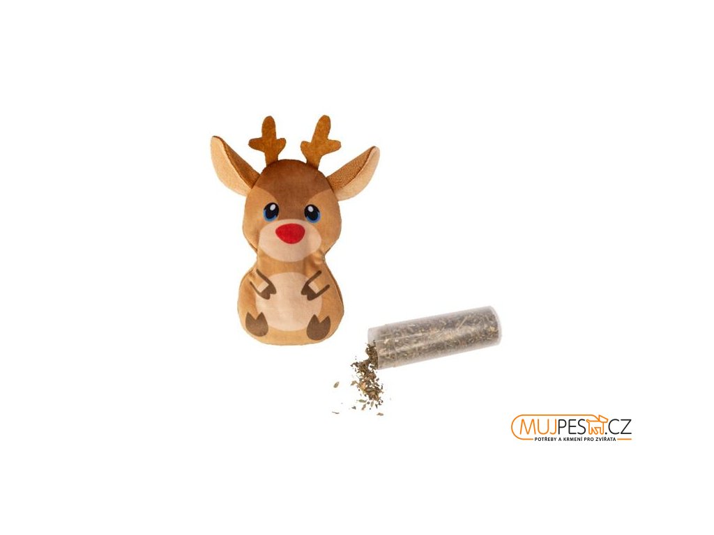 Roztomilý plyšový sobík z řady KONG Holiday Refillables probudí ve vaší kočce přirozené lovecké instinkty a zažene nudu nejen o Vánocích. Sob má uzavíratelnou kapsu na suchý zip, kterou můžete opakovaně plnit přiloženým catnipem (šantou kočičí), přírodní nenávykovou bylinou, jejíž vůně přitahuje až 70 % koček.