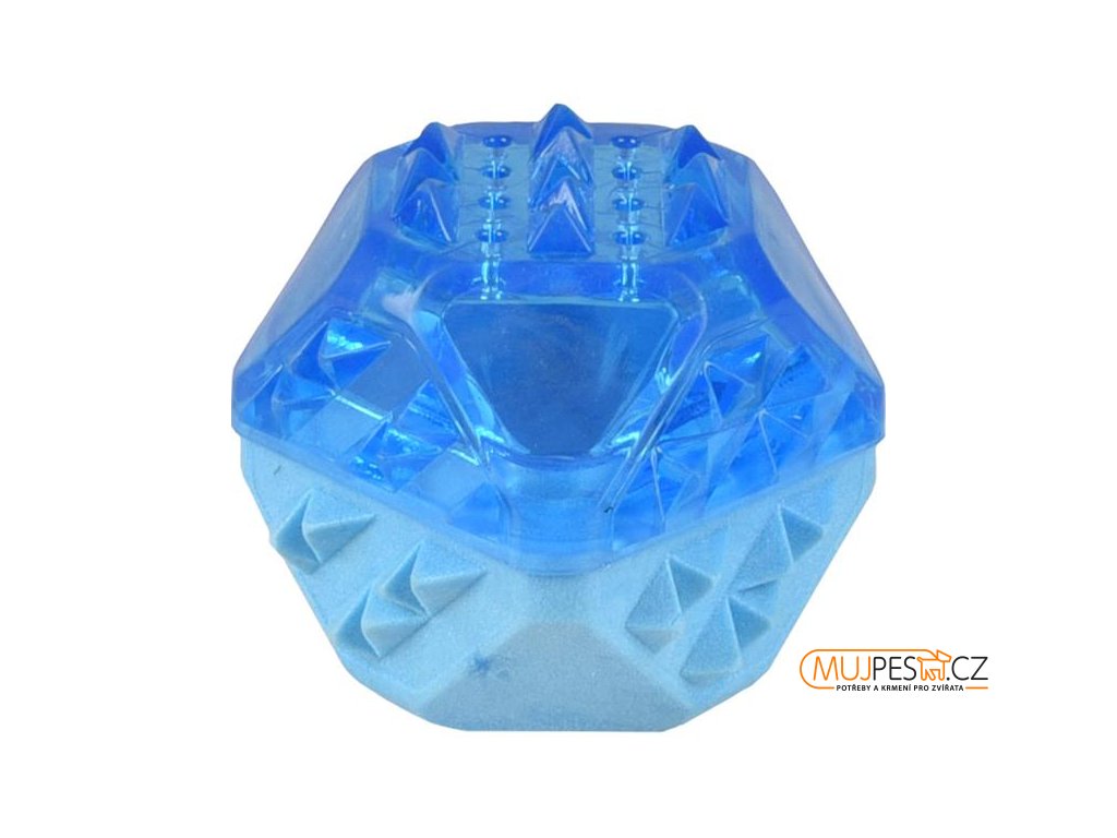 Koule Flamingo Snowy z odolné termoplastické gumy je ideální hračkou pro ochlazení psa v horkých letních dnech. Stačí ji naplnit vodou a zmrazit. Výstupky na povrchu hračky masírují dásně a čistí chrup, čímž napomáhají přirozené péči o zuby.