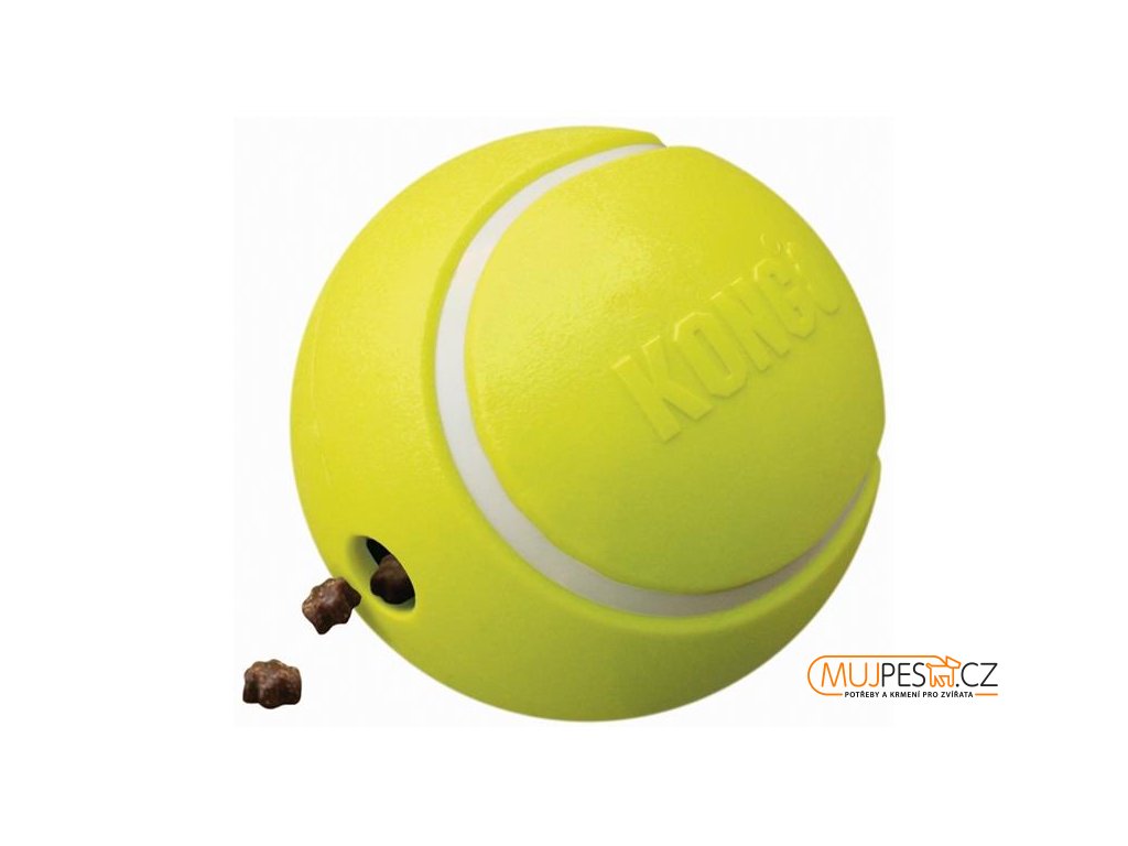 Míč KONG Rewards Tennis z tuhé, trvanlivé gumy může sloužit jako dávkovač krmiva, který povzbuzuje ke hře a aktivnímu pohybu (a je díky tomu ideální hračkou např. pro psy se sklonem k nadváze). Stačí jej naplnit granulemi nebo drobnými pamlsky a pomalé krmení může začít. Z kutálející se a poskakující hračky vypadávají laskominy jen po troškách a při vynaložení určitého úsilí. Bez práce zkrátka nejsou koláče, zasloužená odměna pak ale chutná o to lépe.