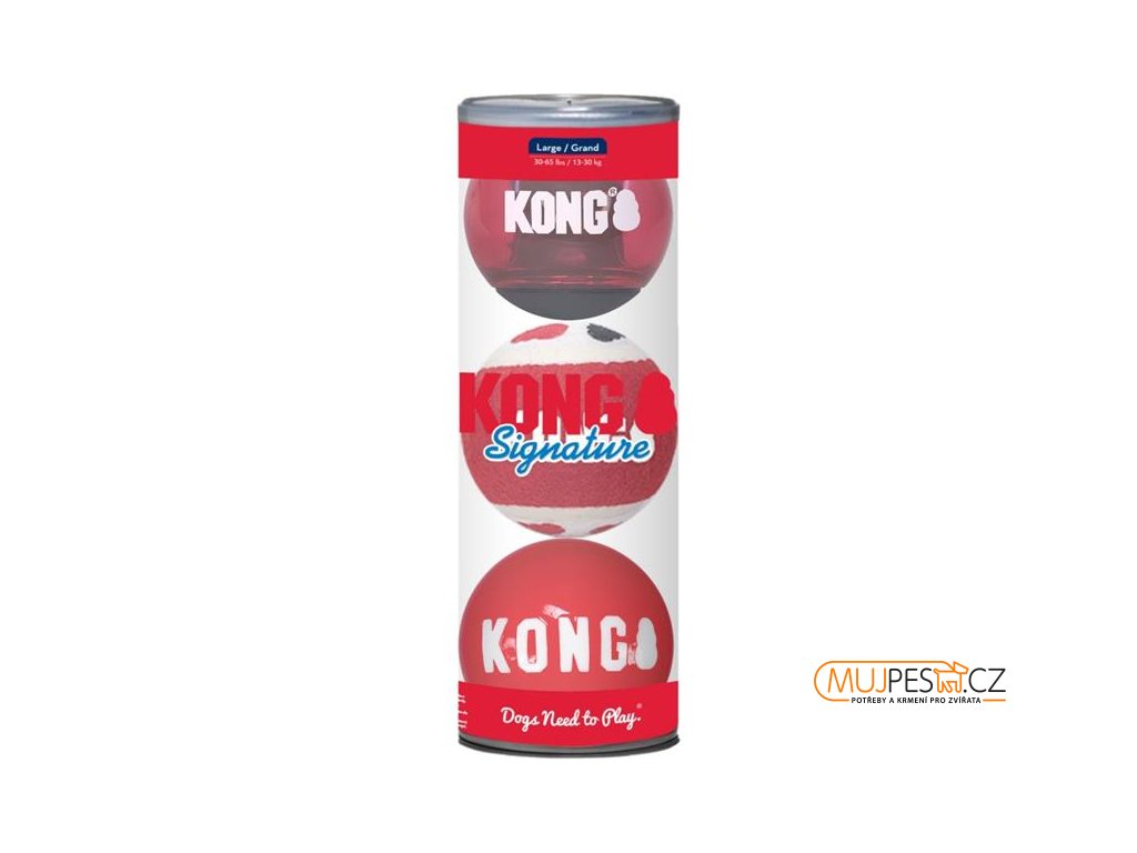 Míčky KONG Signature Ball vynikají odolností a vysokým odskokem díky speciální gumě, z níž jsou vyrobeny. Pružný, a přitom houževnatý materiál dobře odolává psím zubům. Zároveň je k zubům a dásním velmi šetrný – stejně jako jemná tenisová plsť, kterou KONG používá. Pro ještě větší vzrušení ze hry mají v sobě některé míčky zabudované pískátko.