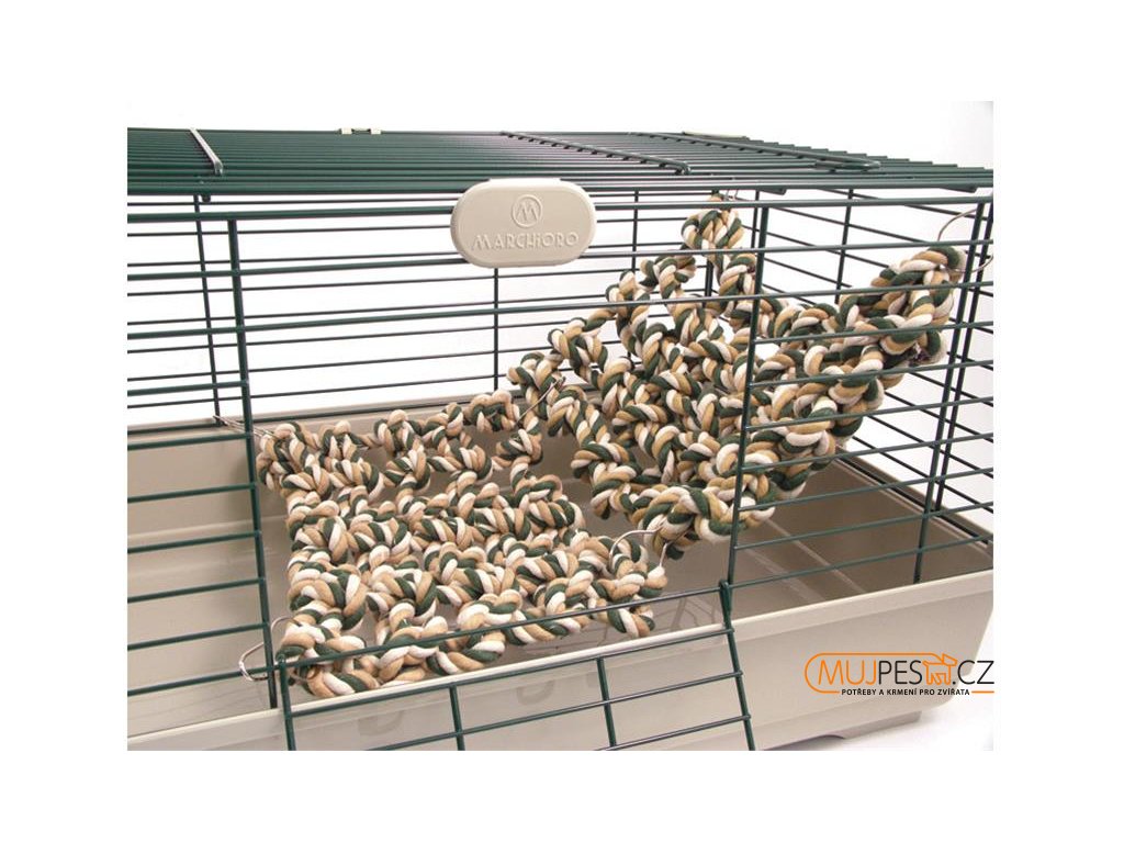 Snadné upevnění na klec pomocí kovových úchytů. Možnost zavěšení v různých polohách – od stropu ke stěně, mezi stěnami, mezi klecemi, atd. Zavěšením na výšku vytvoříte v kleci lezeckou stěnu, zavěšením na šířku bude síť sloužit jako most nebo hamak.