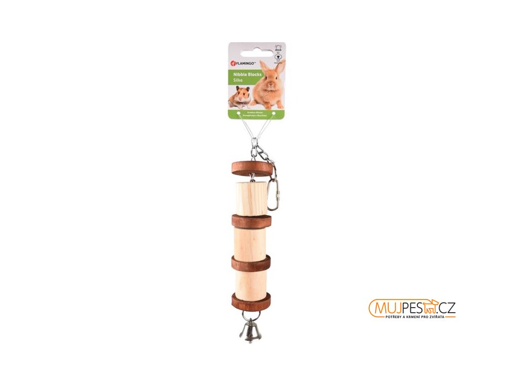 Přírodní hračka pro drobné hlodavé savce, která poslouží jako ideální materiál k okusu. Hračku lze zavěsit na klec, obsahuje zvonek, který podnítí zvířata k aktivitě.