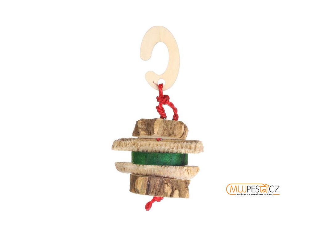 Flamingo Wazir Mix je přírodní závěsná hračka pro drobné savce všeho druhu. Uspokojí jejich zvědavost, zažene nudu a pomůže je udržet v dobré fyzické i psychické kondici. Je vhodná i k okusování – hlodavým mazlíčkům napomáhá v obrušování zubů. Na červeném sisalovém provázku jsou navěšeny rozmanité různobarevné kousky dřeva a kukuřičných klasů. Hračku snadno připnete ke kleci pomocí dřevěného háčku. Obsahuje zdravotně nezávadné barvy.