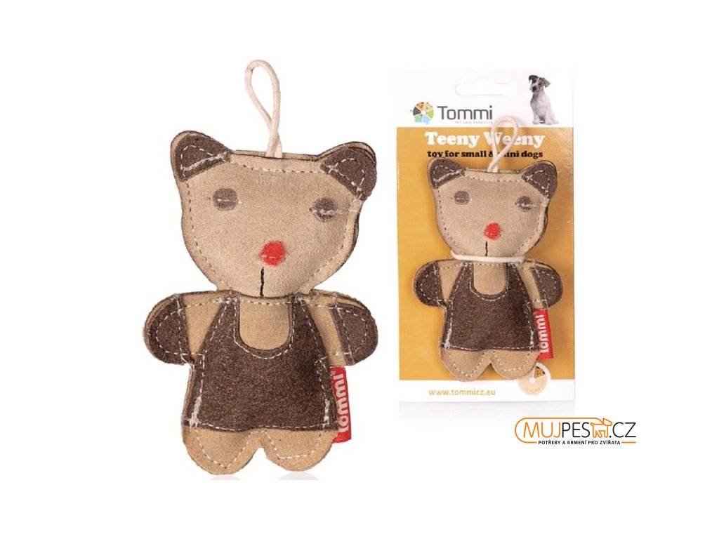 Detailně zpracovaná hračka pro malé psy a štěňata z přírodní kůže ve tvaru medvídka.