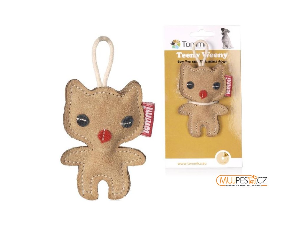 Detailně zpracovaná hračka pro malé psy a štěňata z přírodní kůže ve tvaru koťátka.