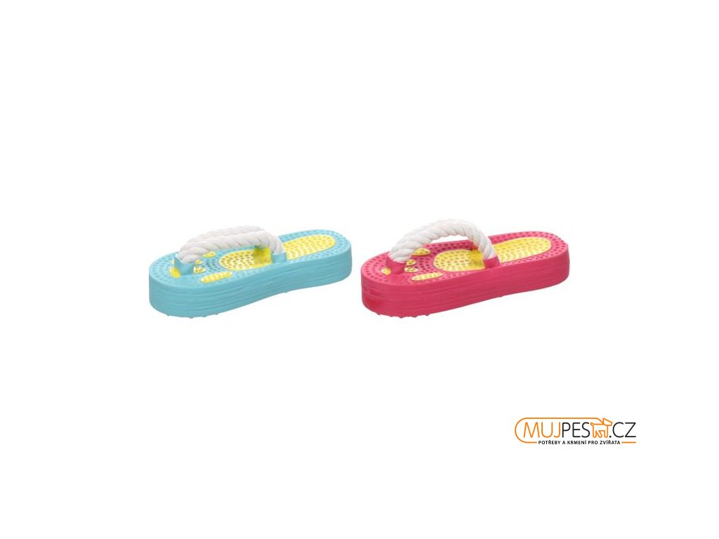 Nechejte svého čtyřnohého kamaráda vydovádět se s veselou plážovou žabkou Flippe. Bota je vyrobena z latexu a pro ještě větší zábavu obsahuje pískátko a provázek. Díky členitému povrchu se dobře drží v tlamě a jejím kousáním si pes masíruje dásně a čistí zuby.