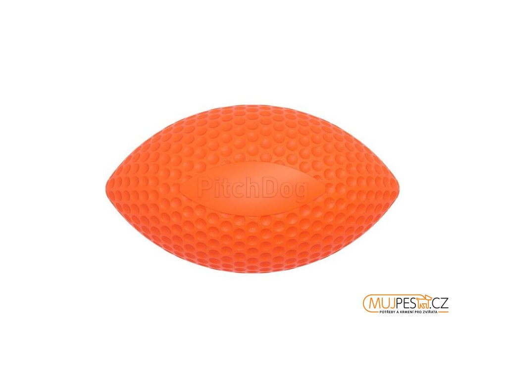 Pěnový ragbyový míč PitchDog je vhodný pro aportování na souši i ve vodě. Díky svému tvaru po dopadu na zem nepředvídatelně odskakuje, čímž ještě víc podněcuje lovecký instinkt psa. Lehký a zároveň odolný materiál je netoxický a bezpečný pro psí zuby a dásně. Hračka odolává nečistotám (v případě silného znečištění ji stačí opláchnout vodou) a nevstřebává pachy. Díky výrazné reflexní barvě bude pro vás i vašeho psa velmi dobře viditelná.