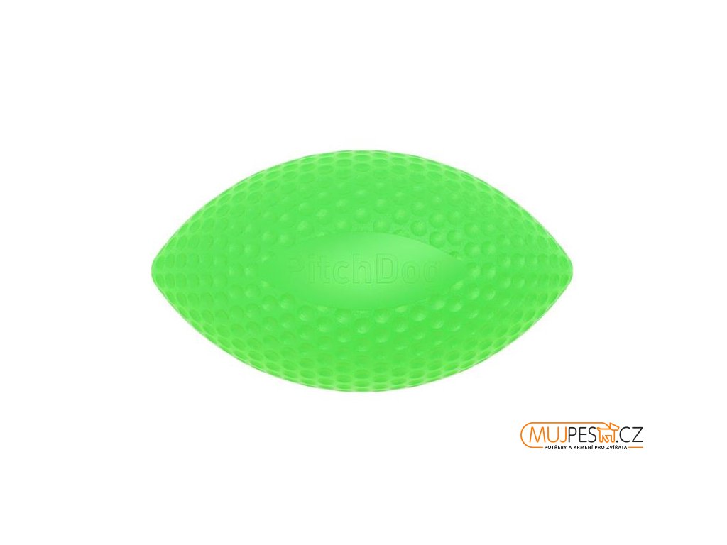 Pěnový ragbyový míč PitchDog je vhodný pro aportování na souši i ve vodě. Díky svému tvaru po dopadu na zem nepředvídatelně odskakuje, čímž ještě víc podněcuje lovecký instinkt psa. Lehký a zároveň odolný materiál je netoxický a bezpečný pro psí zuby a dásně. Hračka odolává nečistotám (v případě silného znečištění ji stačí opláchnout vodou) a nevstřebává pachy. Díky výrazné reflexní barvě bude pro vás i vašeho psa velmi dobře viditelná.
