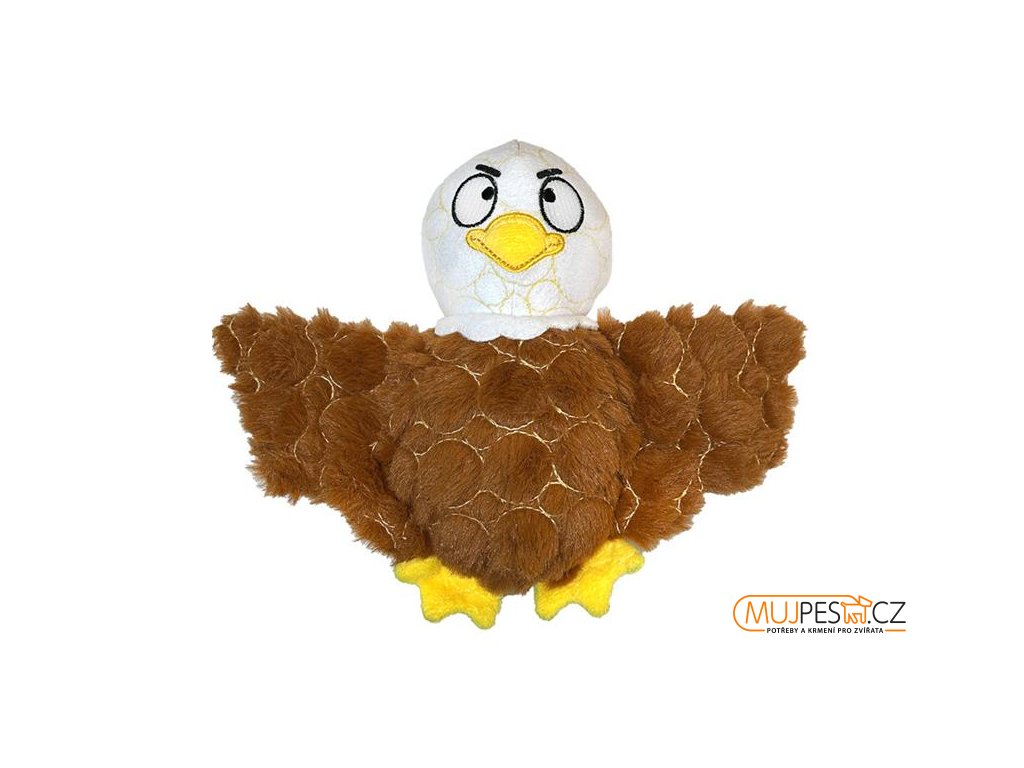 Z lesa k vám přilétá Bite Force Eagle, hračka navržená speciálně pro psy milující kousání a žvýkání. Díky zesíleným švům, odolným tkaným vrstvám a kevlarovému vláknu vzdoruje ostrým psím zubům. Kevlar vyniká dlouhou životností a je široce používán v policejním, armádním a leteckém průmyslu pro svou výjimečnou odolnost v tahu. Pro ještě větší vzrušení ze hry má hračka zabudované pískátko a šustivou část. Kousáním hračky si pes čistí zuby, posiluje čelist a zmírňuje případný stres či úzkost. Orel s roztaženými křídly je vhodný pro hraní uvnitř i venku, kde ho díky výrazným barvám neztratíte.