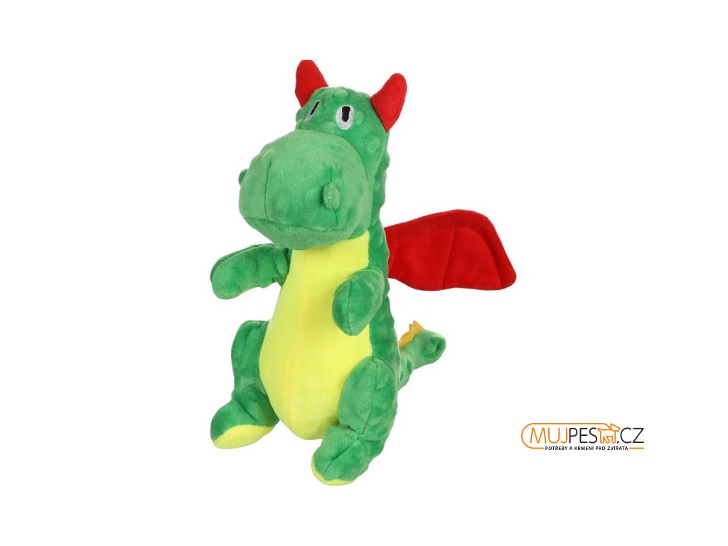 Propracovaná hračka z měkkého plyšového materiálu je jako stvořená pro všechny psí milovníky mazlení a hraní. Pro ještě větší zábavu sedící drak s křídly píská a šustí.