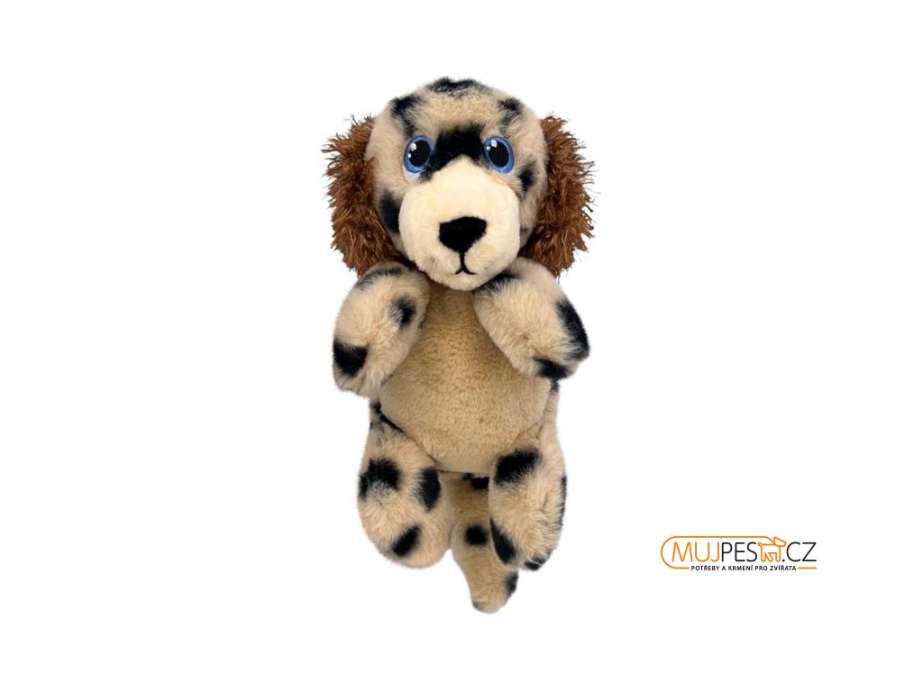 Heboučký materiál a plandavé končetiny dělají z plyšových štěňat řady KONG Comfort Pups ideální kámoše na mazlení, domácí aportování a jemné kousání, přetahování či lomcování. Zájem psa o hračku zvyšují šustivé uši a zabudované pískátko. Obalový štítek není z kartonu, ale z šustivého plyše a dá se díky tomu použít jako další hračka.