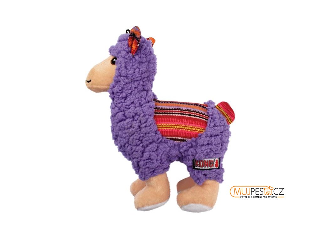 Lama z řady KONG Sherps pokrytá měkkým a huňatým fleecem přímo vyzývá k mazlení, jemnému kousání a ožužlávání. Po vyšší odolnost je hračka šitá ze dvou vrstev látky. Vzrušení ze hry zvyšuje pískátko ukryté v břiše a hřbet vyložený šustivou folií.