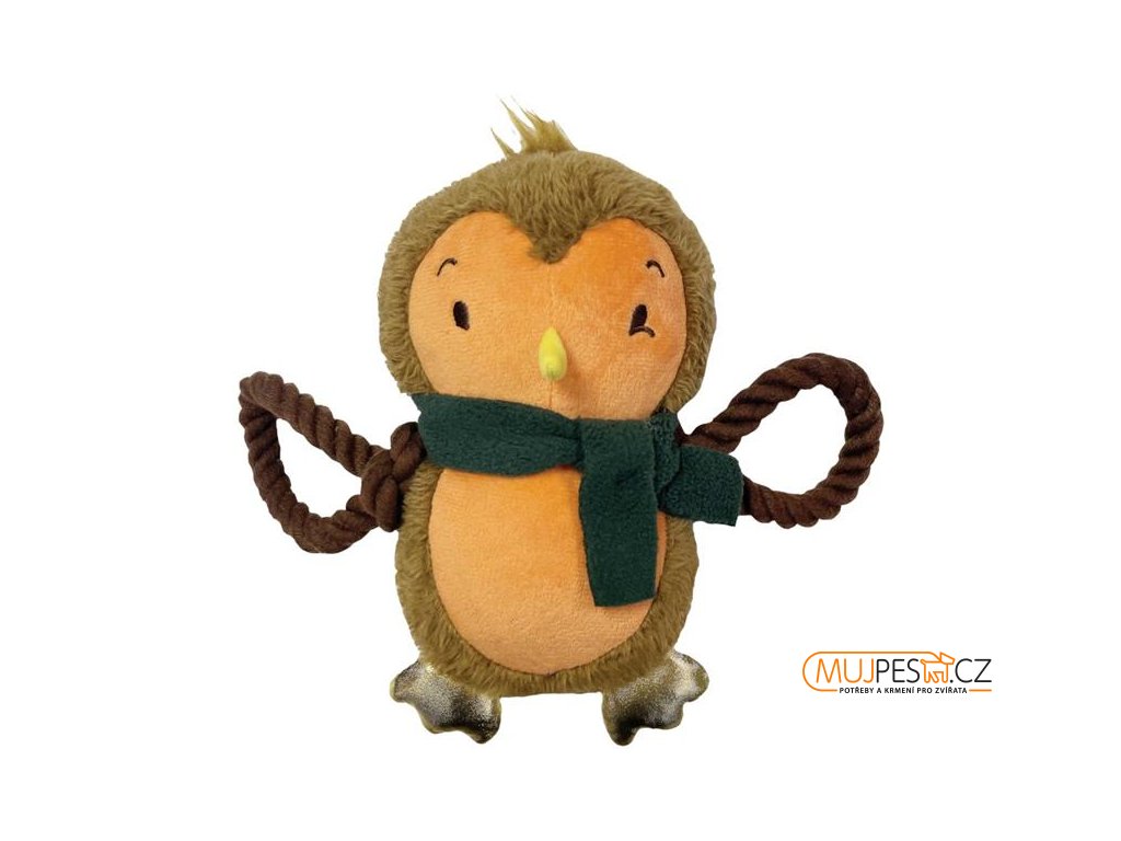 Vánoční plyšová hračka pro psy obsahuje kroucená lana, která jsou ideální k přetahování a podporují přirozené žvýkání. Hračka má zabudované pískátko.