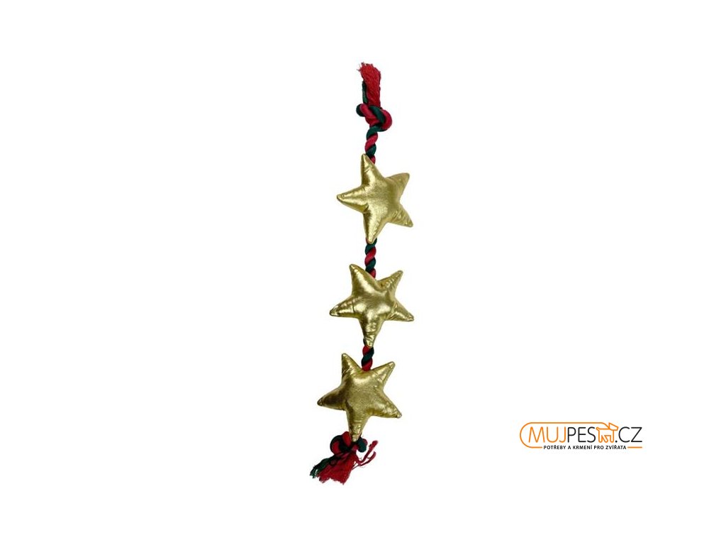 Vánoční hračka pro psy obsahuje dlouhé kroucené lano, které je ideální k přetahování a slouží k přirozenému žvýkání.
