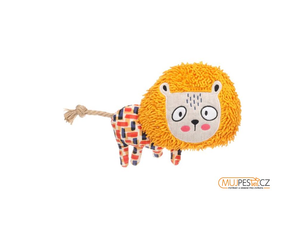 Nechejte svého čtyřnohého kamaráda vydovádět se s lvíčkem z řady Saffia. Lev v hořčicově žluté/okrové barvě je vybaven pískátkem a ocáskem z provazu pro ještě více zábavy.
