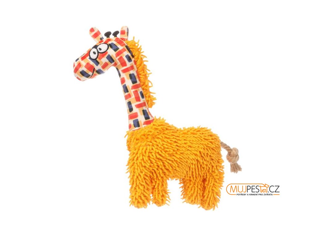 Nechejte svého čtyřnohého kamaráda vydovádět se s veselou žirafou z řady Saffia. Hračka v hořčicově žluté/okrové barvě je vybavena pískátkem a ocáskem z provazu pro ještě více zábavy.