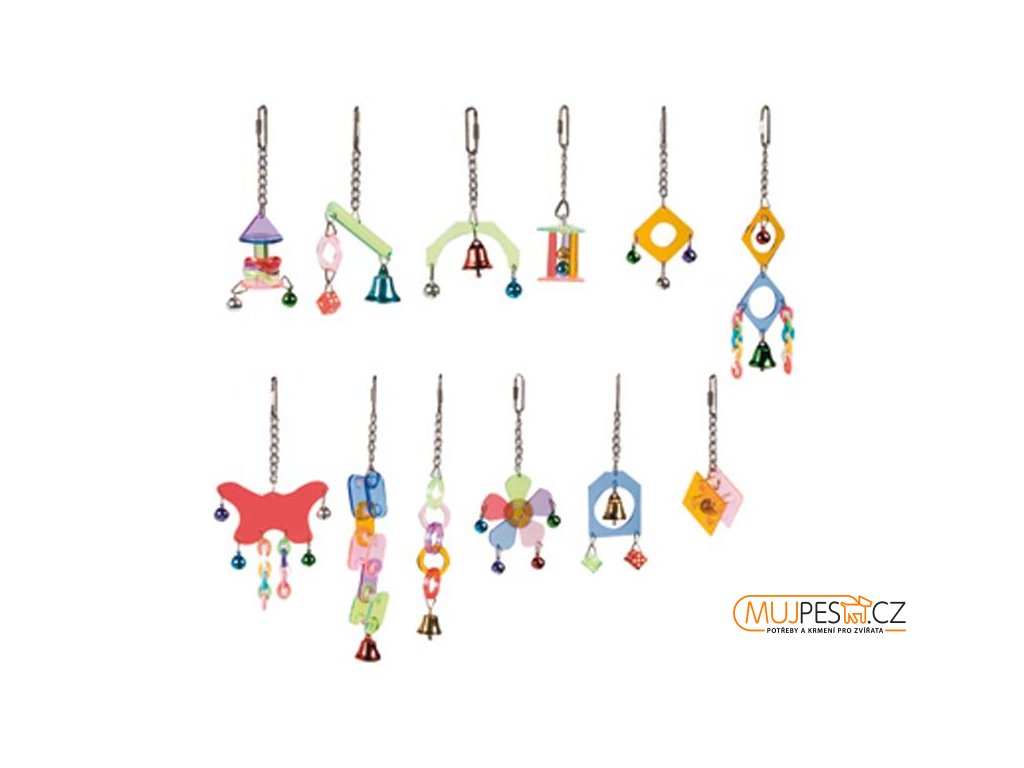 Ideální hračka pro ptáky, která zabraňuje nudě a lze ji zavěsit do klece.