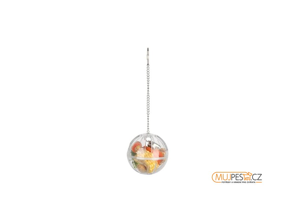 Interaktivní plnitelná hračka je určená pro malé a středně velké papoušky. Dutou kouli lze naplnit pamlsky nebo semeny, a podpořit tak přirozené shánění potravy, mentální aktivitu a omezit nudu i přejídání. Hračka je vyrobena z odolných a bezpečných materiálů a snadno se připevňuje do jakékoli klece nebo voliéry.