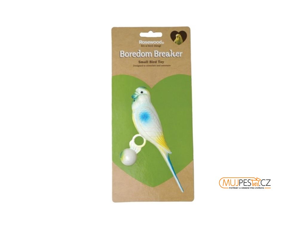 Plastová hračka pro ptáky, imitace andulky v životní velikosti. Hračka se navlékne na bidýlko. Díky závaží, se po vychýlení vrací do vyvážené polohy.