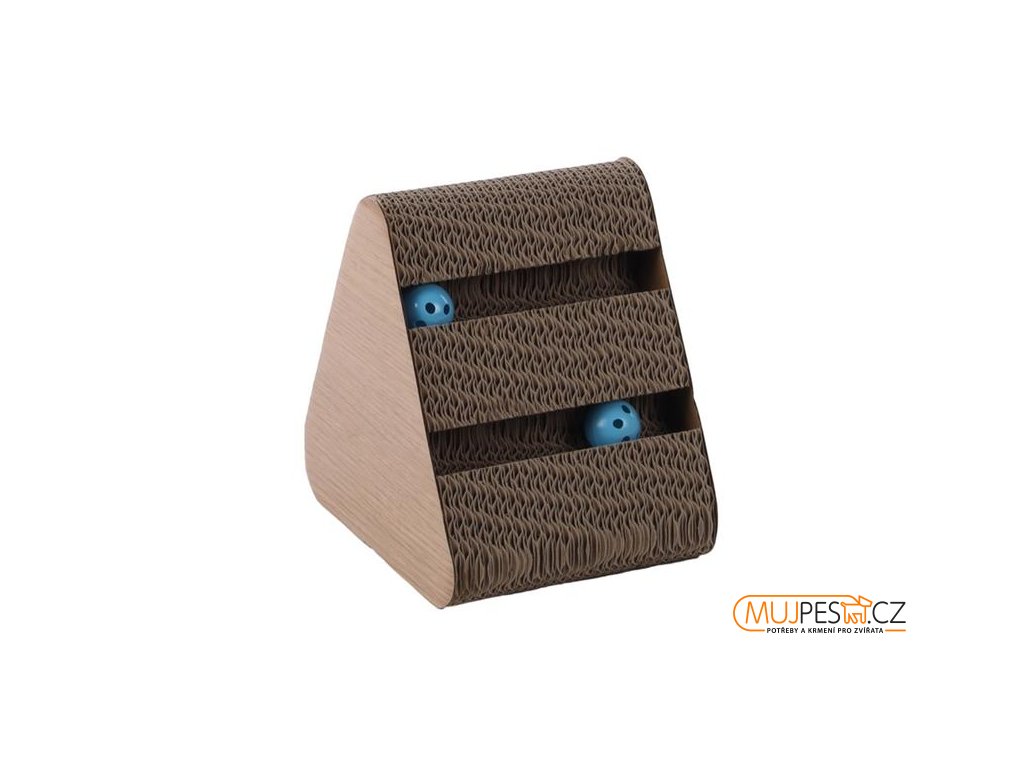 Papírové škrabadlo Flamingo Beli pro kočky je vyrobeno z kvalitního recyklovatelného vlnitého kartonu. Škrabací plochy jsou ze tří stran, takže škrabadlo vydrží déle. Součástí balení je sáček s catnipem (šantou kočičí), kterým lze škrabadlo posypat, aby bylo pro kočku ještě přitažlivější. Pro větší zábavu jsou ve škrabadle dvě skuliny s cinkající kuličkou.