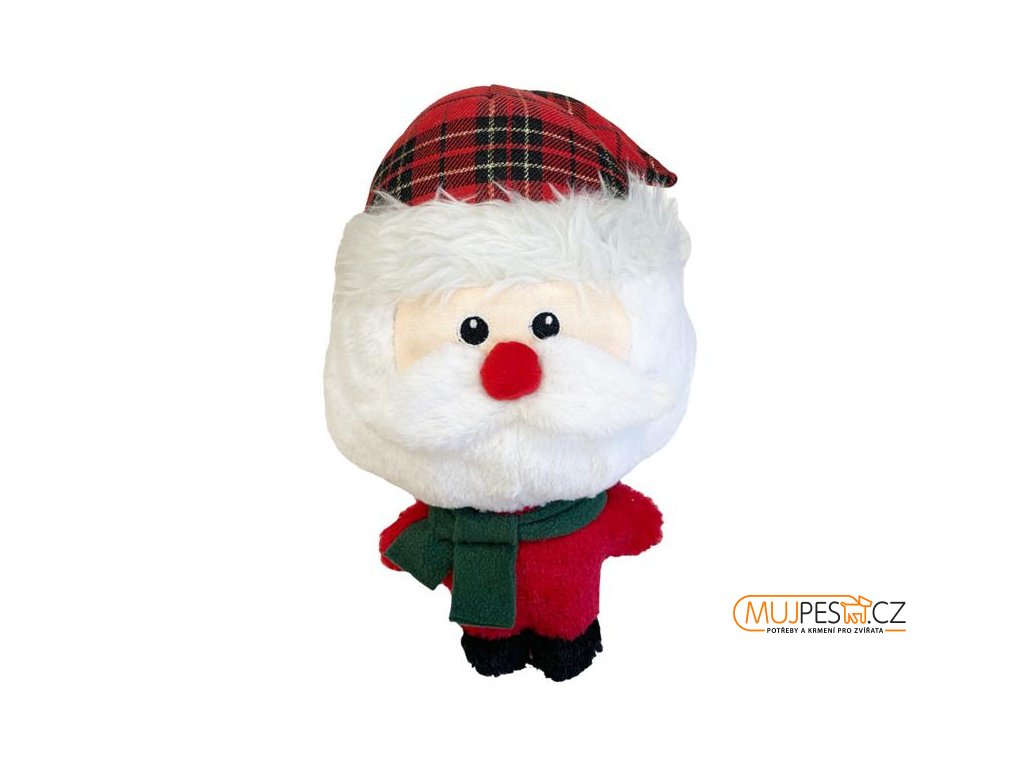 Plyšový Santa Claus s velkou hlavou vybízí ke hře různorodými texturami a pískátkem umístěným uvnitř hračky. Ideální jako dárek pod stromeček.