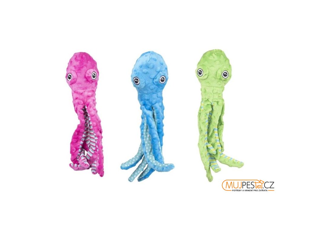 Tato rozkošná psí hračka je nejen roztomilá na pohled, ale i na příjemné mazlení. Jasně barevná barva hračky ve tvaru chobotnice bude dělat vašemu mazlíčkovi společnost v jeho pelíšku či přepravce. Visící chapadla jsou ideální na hraní a hračka je vyrobena z příjemného materiálu.