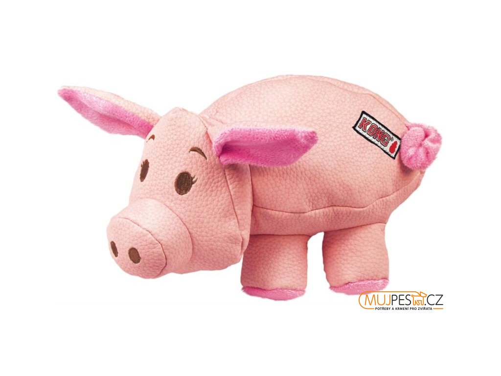 KONG koženkové prasátko je ideální hračkou pro Vašeho psa. KONG prasátko se může pochlubit jedinečnou strukturou materiálu. Materiál poskytuje zesílenou vrstvu pro dlouhou životnost hračky při žvýkání, což zvyšuje dobu hraní psa. Prasátko obsahuje nízkotónové pískátko, které zvětšuje zvědavost Vašeho psa. Nízký tón ocení především majitelé, kterým vadí vysoké tóny pískání jiných hraček.