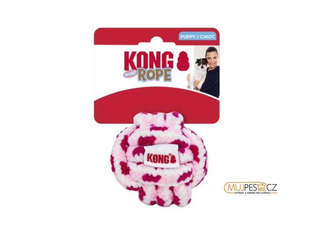 Lehký textilní míč pro štěňata KONG Puppy Rope Ball vznikl propletením lana do tvaru koule. Díky mimořádně měkké, ale přitom velmi pevné přízi, ze které je lano spleteno, je tato hračka ideální pro štěňata – je příjemná na skus, bezpečná pro jejich zuby i dásně, ale zároveň velice odolná vůči zničení. Podporuje jejich instinktivní žvýkací potřeby a lze ji využít například při nácviku aportování. Svými rozměry (velikost L) vyhovuje nejen štěňatům.