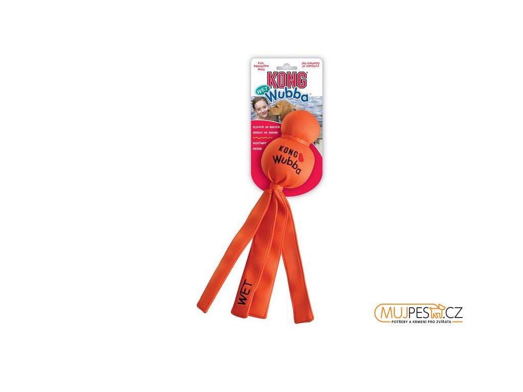 Kong Wubba Water spojuje tolik možností her jako žádná jiná hračka. Skládá se ze dvou rozdílně velkých míčků, které jsou potažené mimořádně odolným nylonovým materiálem. Součástí většího míčku je pískátko. Díky dlouhým třásním je hračka Kong Wubba vhodná k aportování. Hračku Wubba Water Kong si zamiluje každý hravější pes, který se neštítí vody, hračka totiž plave na hladině.