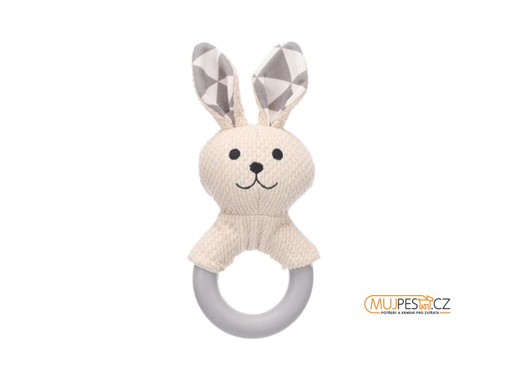 Rozkošný králíček Rabbo z příjemně texturované tkaniny je ideální volbou pro vaše hravé štěně. Jeho součástí je gumový kroužek vhodný pro žvýkání a okusování v době, kdy se štěněti prořezávají zuby. Pro ještě více zábavy obsahuje hračka pískátko.