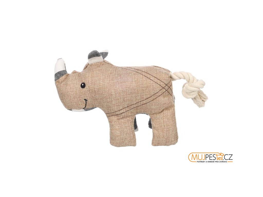 Textilní nosorožec z řady Wigri je perfektní hračka pro psy anebo páníčky, kteří nemají rádi hluk – neobsahuje totiž pískátko ani nevydává žádné zvuky. Měkká výplň je potažená odolným plátnem. Provazový ocas vybízí k přetahování a žvýkání.