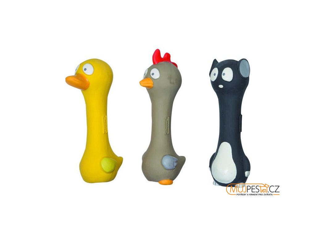Vinylová hračka pro psy s motivem zvířátek. Hračka obsahuje pískátko pro aktivnější hru domácího mazlíčka.
