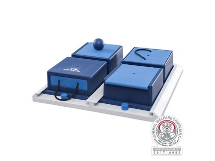 Desková hra pro psy založená na dohledávce pamlsků v různých variabilních skrýších.