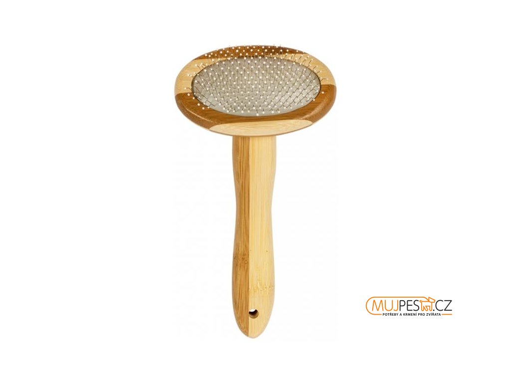 Hřeben k odstraňování odumřelé srsti bez podráždění pokožky. Vhodný pro hustou, dlouhou i kudrnatou srst středních plemen. Ergonomická rukojeť z ekologického bambusu. Vhodný pro psy i kočky. Ve třech velikostech.