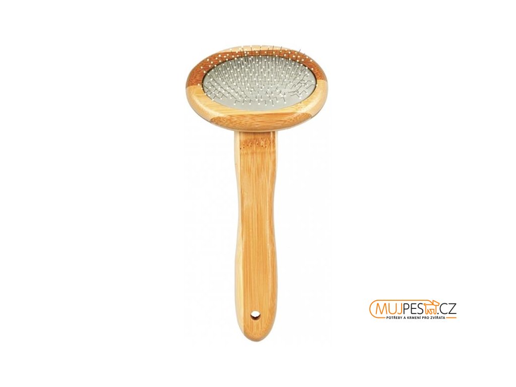 Hřeben k odstraňování odumřelé srsti bez podráždění pokožky. Vhodný pro hustou, dlouhou i kudrnatou srst malých plemen. Ergonomická rukojeť z ekologického bambusu. Vhodný pro psy i kočky. Ve třech velikostech.