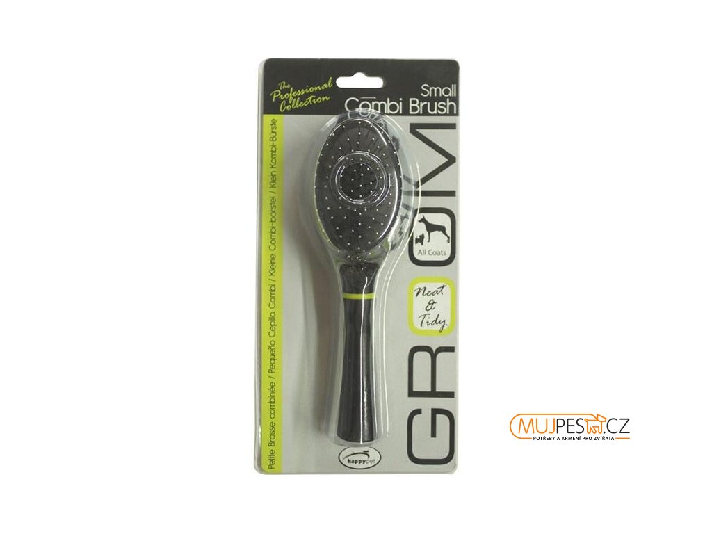 Kartáč Groom Combi Brush je vhodný k česání srsti psů a koček s krátkou až středně dlouhou srstí. Kombinovaný kartáč v sobě spojuje dvě základní pomůcky pro péči o srst zvířete: