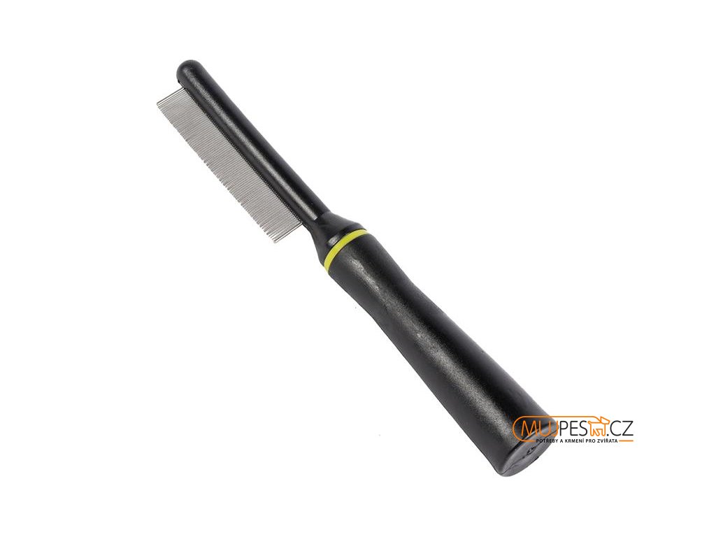 Hřeben Groom Flea Comb je vhodný k vyčesávání všech typů srsti. Při pravidelném česání účinně odstraňuje blechy, vši a jejich vajíčka a spolu s nimi I nečistoty, odumřelou srst a zacuchané chuchvalce. Kulaté ocelové zuby s tupými konci chrání pokožku před poraněním. Válcovitá hlava potažená plastem brání hromadění statického náboje. Rukojeť je ergonomická (tvarovaná pro pohodlný úchop).