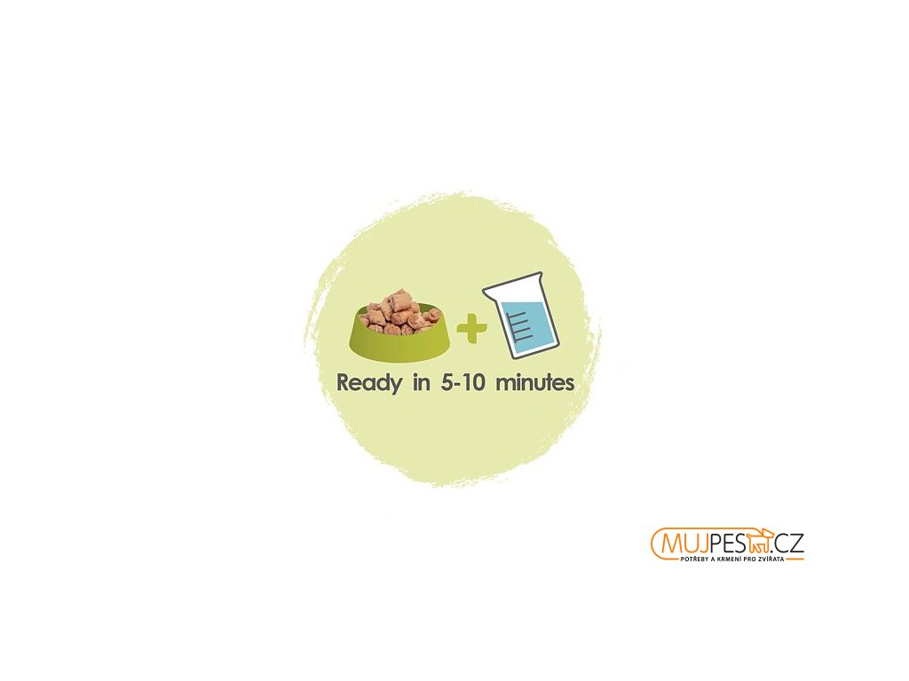 Pro vznik kompletního krmiva je třeba přidat jen vodu v množství podle preferencí Vašeho psa. Hotovo za 5 - 10 minut.