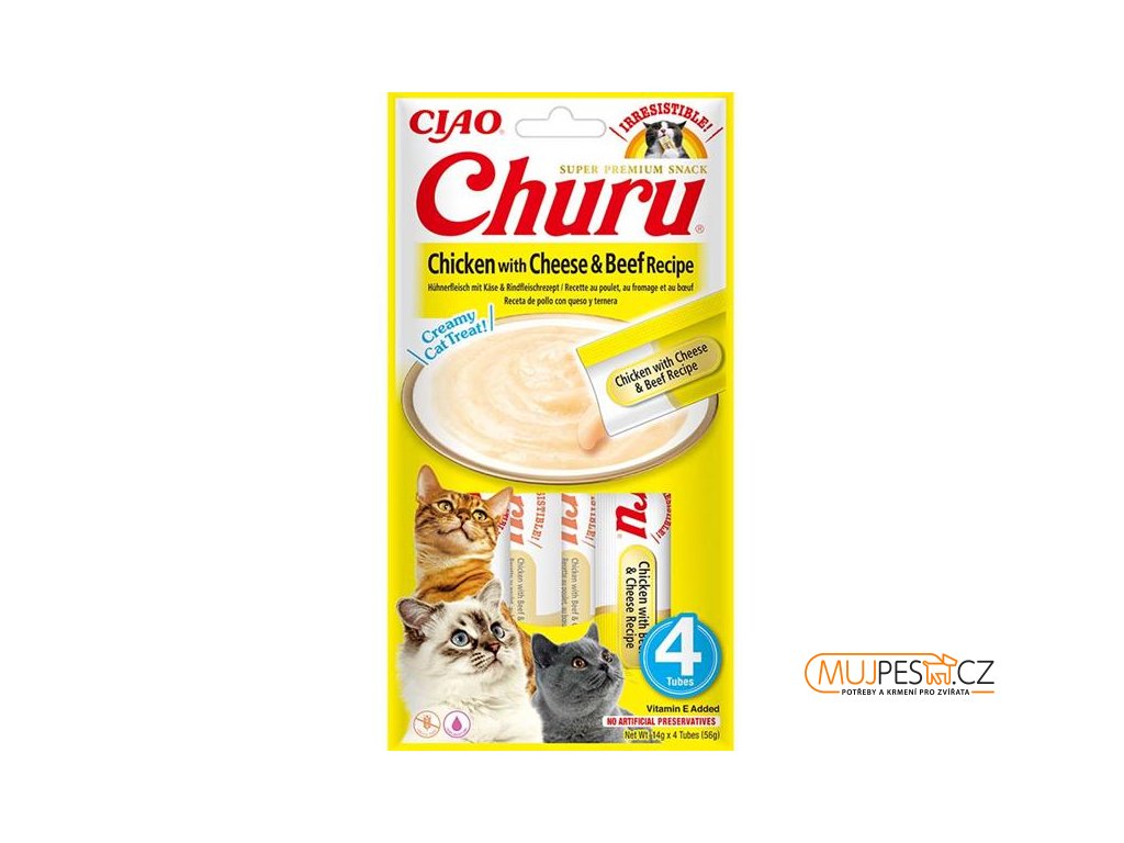 Inaba Churu cat snack kuře, sýr a hovězí příchutí 4x 14g
