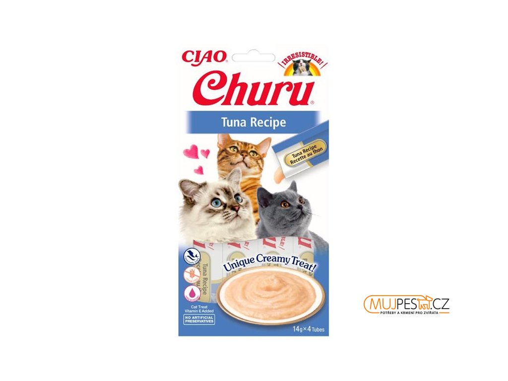 Churu masové pyré pro kočky s divokým mořským tuňákem.