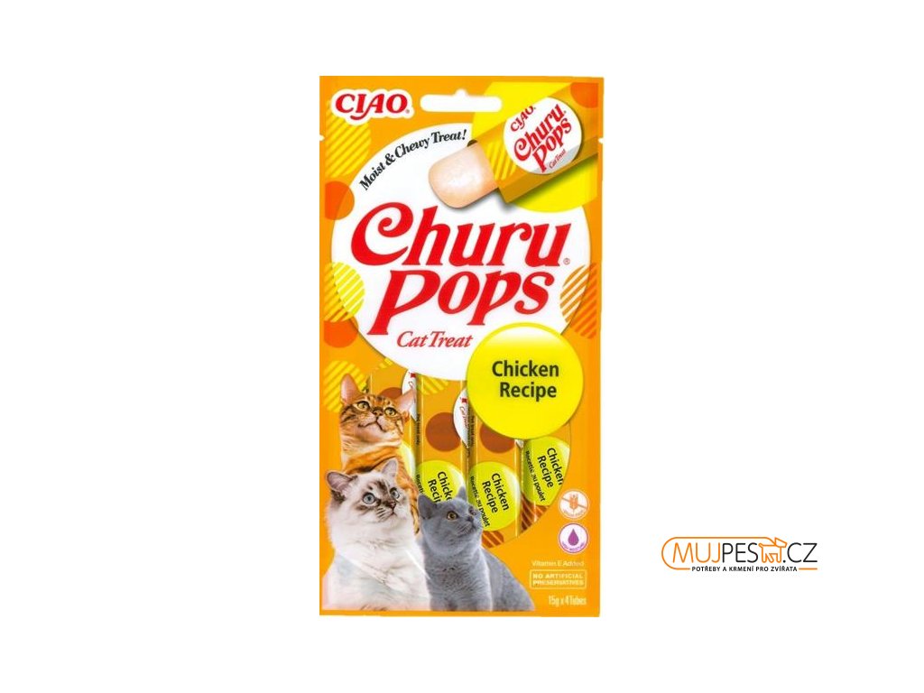 Churu Pops masová lízátka pro kočky s kuřecím z farmářského chovu.