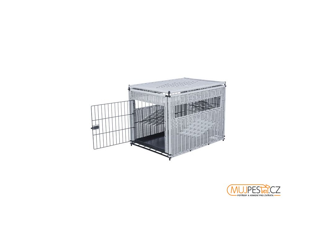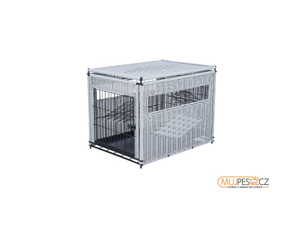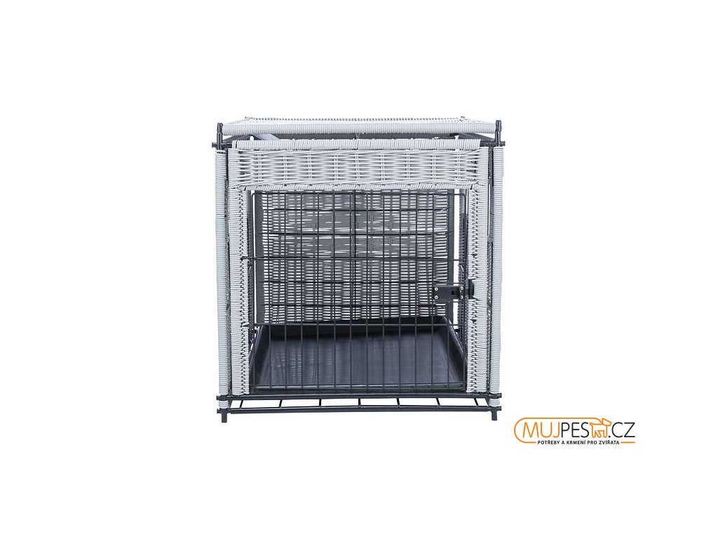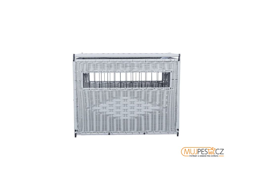 Interiérový kennel, M: 58 x 60 x 77 cm, polyratan, světlešedá